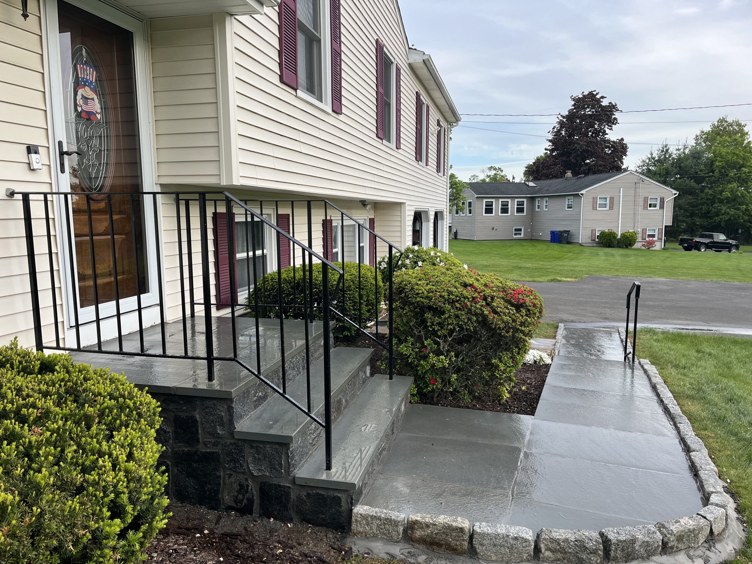 Damaged concrete steps and loose or missing railings are common problems for homeowners in Waterbury, Connecticut and surrounding towns. Over time, freezing temperatures, snow, ice, and moisture can cause concrete steps to crack, sink, or deteriorate. Without proper railings, these steps can become unsafe for family members and visitors.