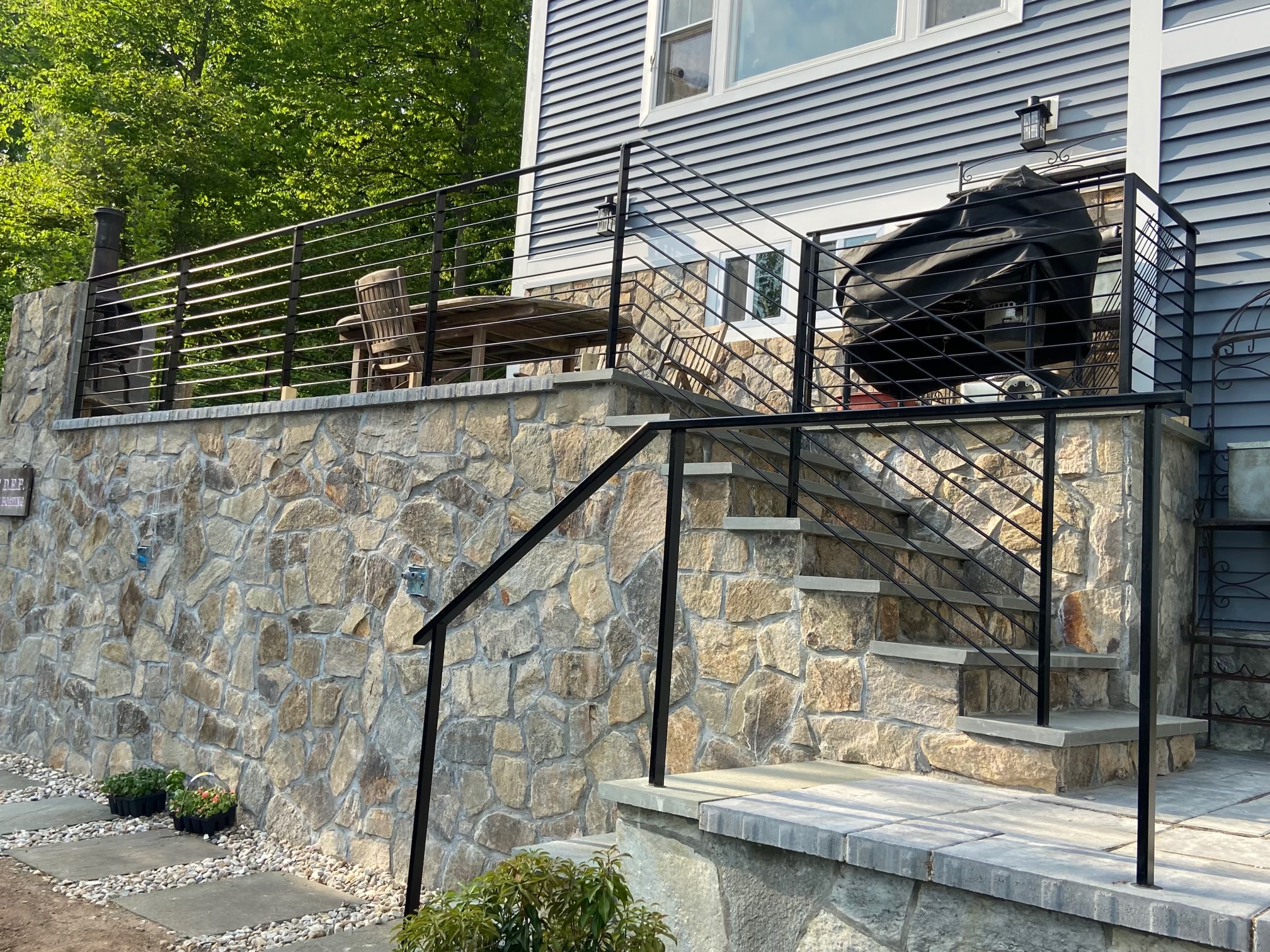 Welcome to our Custom Made Rod Iron Railings Gallery page, which showcases photos from some of our recent projects. You can click on any of the thumbnails below to launch the slideshow. We are in the process of adding new photos, so please check back again soon. You can click the following link to view our 5-star Google Reviews.